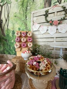 Ofrecemos actividades divertidas como el castillo hinchable y talleres lúdicos . Además, contamos con un Bakery Corner donde los más peques podrán personalizar cupcakes y waffles con diferentes toppings. ¡Haz de tu comunión un evento mágico y lleno de alegría con nosotros!