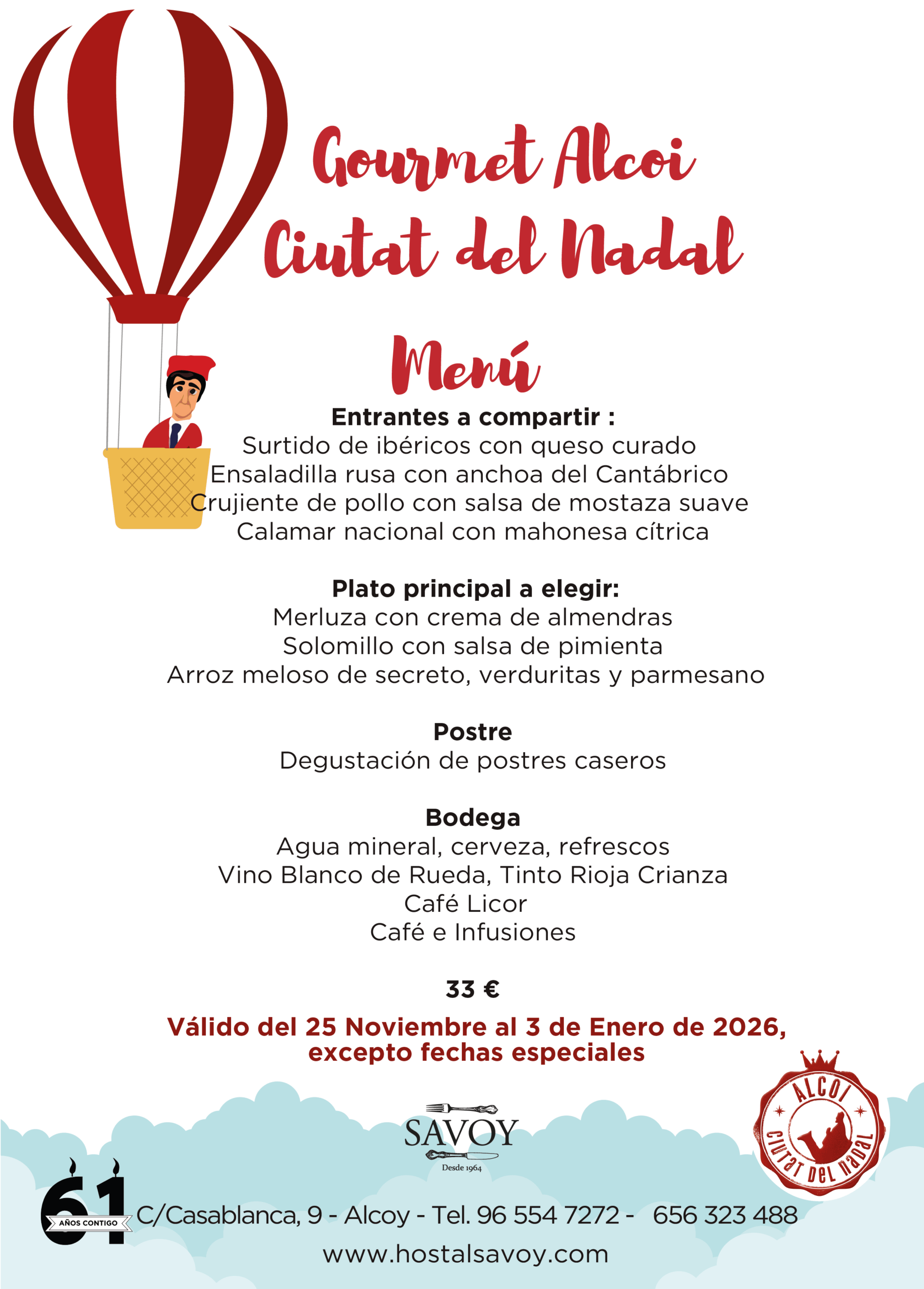 Para estas fiestas navideñas os invitamos a explorar nuestro Gourmet Alcoi Ciutat del Nadal. Descubre una selección especial de platos que capturan la esencia de Alcoy en cada bocado.