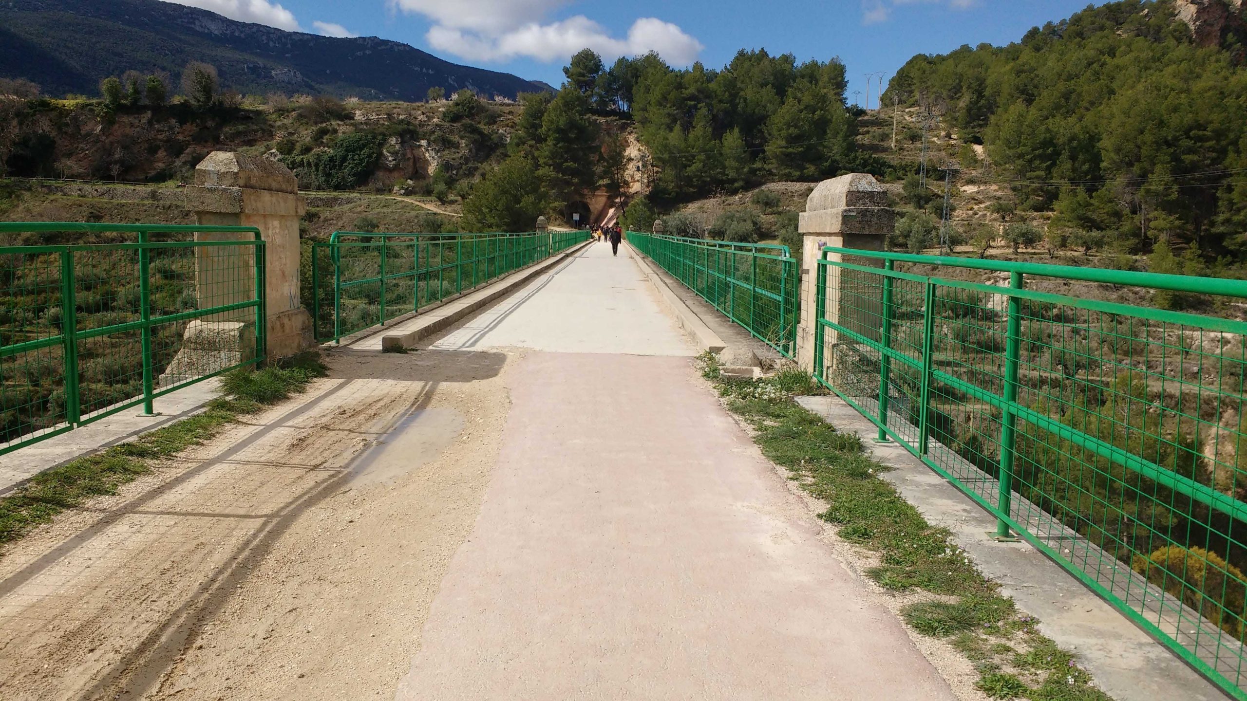 Al igual que en la anterior ruta comenzaremos en la zona del Batoy, pues al final de este barrio inicia la vía verde  y tras pasar el primer puente  y dos túneles, nos encontraremos con el Puente de las siete lunas.  Al principio del puente hay una bajada que nos encamina en la senda que nos lleva al Racó de sant bonaventura .Para ir a Els Canalons tenemos que encontrar una rampa que hay a la izquierda, cerca de los paneles. En esa rampa se inicia una pista que sube a unas barandillas de madera que nos conducen a la parte de atrás de las cascadas del Racó. Siguiendo el río pronto estaremos pasando la pared que hay que cruzar para atravesar la laguna, más adelante esta el paso de la muerte donde hay cadenas y se debe ser cuidadoso.